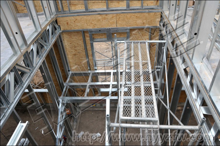 》房屋骨架使用冷彎薄壁輕鋼體系,工廠預(yù)制完成,現(xiàn)場只進(jìn)行緊固連接。